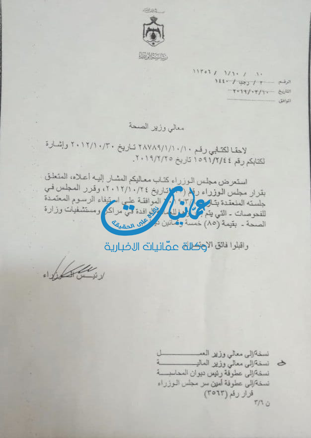الحكومة ترفع اجور الفحص الطبي للعمالة الوافدة الى 85 دينارا أخبار المملكة وكالة عمانيات الإخبارية