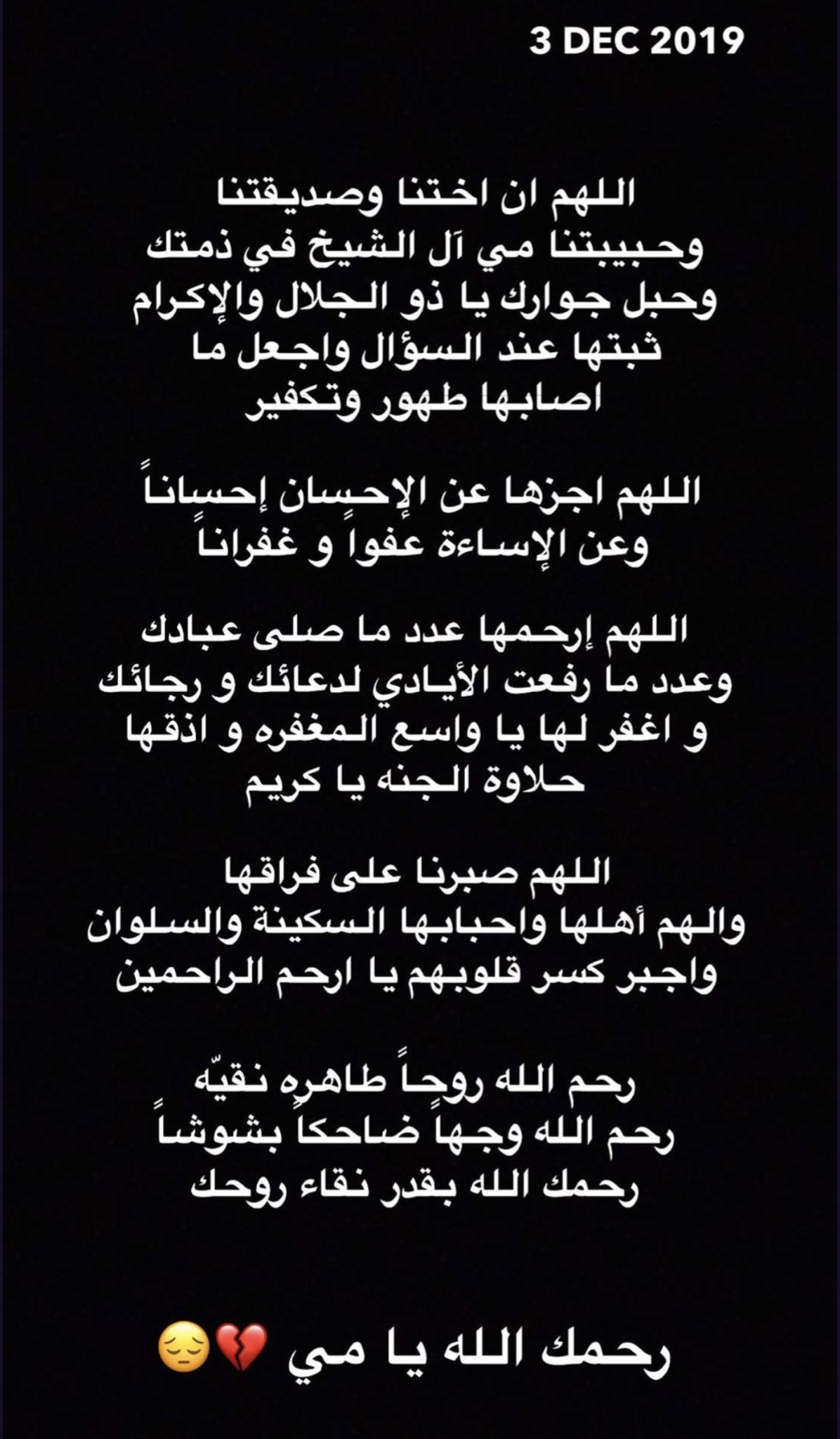 A H L A M On Twitter اللهم ارحمها واكرم نزلها وادخلها الجنه وعوض شبابها بالجنه يارب اجمل من عرفت ادعوا لها امنتكم مي عبدالملك آل الشيخ Https T Co 2siz4vvnlr